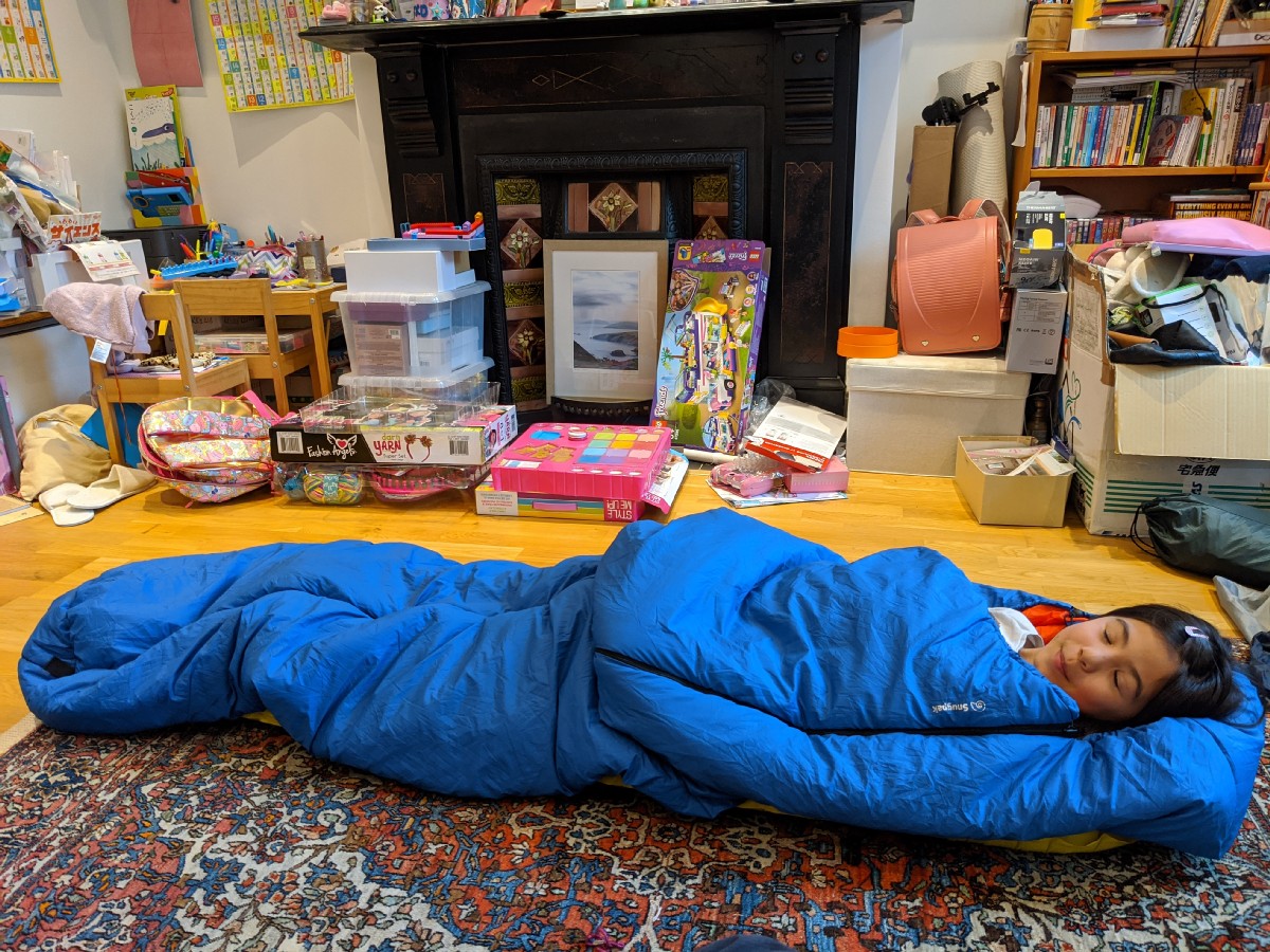 18:25:08 | 18:25:55 Another hoverfly. | 19:47:32 Erika trying out my sleeping bag. | 19:47:51 She looks cosy! |