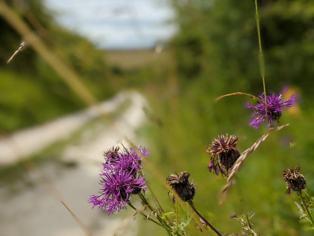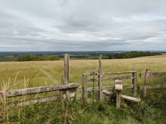17:18:48 Bee on a scabious. | 17:26:19 Charlbury Hill. | 17:28:29 | 17:30:49 I took a slight detour to go to the top of Charlbury Hill and rested there a little while. |