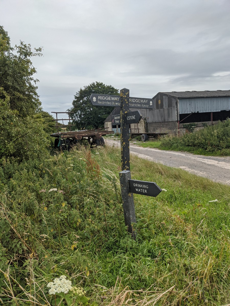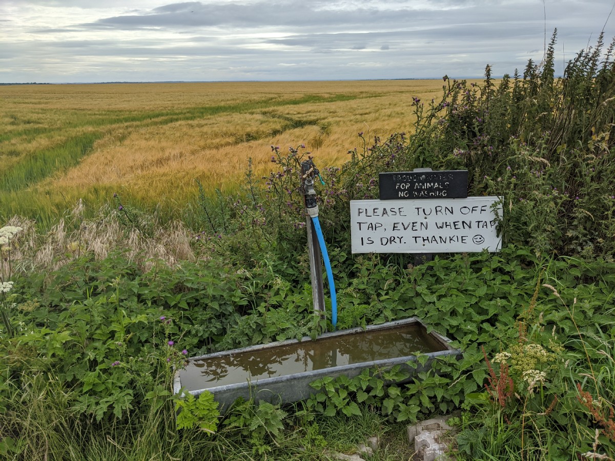 16:31:44 I was quite tempted but a quick check on Google Maps suggested a quarter of a mile was a bit of an under exaggeration. Also country pubs aren't often open in the middle of the afternoon, particularly on week days. | 16:33:51 It started raining again, so I thought it prudent to put on the poncho. I felt a bit ridiculous wearing it but it is very weight efficient - half the weight of my raincoat, and also doubles as a groundsheet. | 16:44:38 Farm with another drinking water point. | 16:45:06 I don't think I actually saw another drinking water tap on the remainder of the route. I'm glad I carried plenty of water with me! |