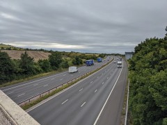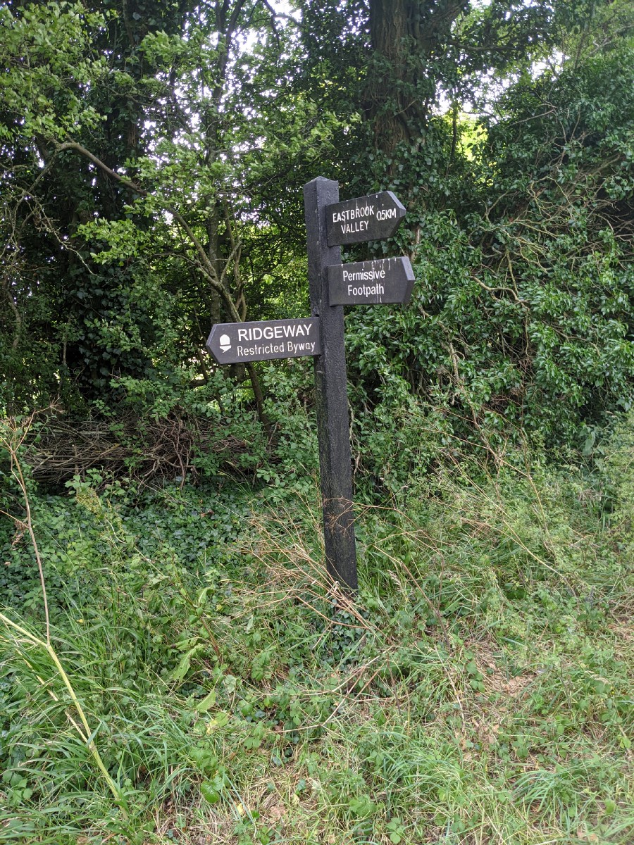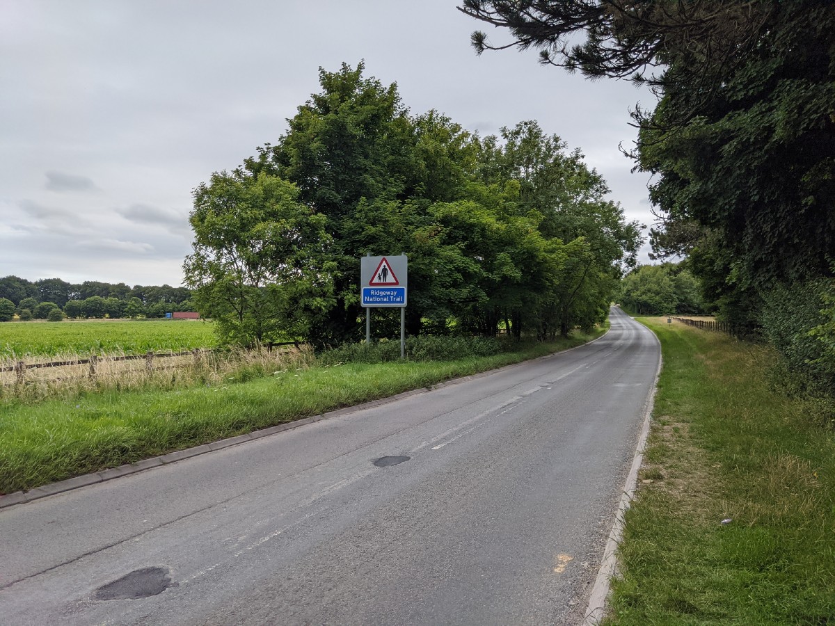 18:05:08 Nearing the M4 now. | 18:07:56 The first time I had passed anything like a pub or restaurant on the route today. I have to admit I was briefly tempted at the thought of a curry, but no, I pressed on. | 18:12:31 The Ridgeway followed this road to cross the M4. | 18:17:03 The M4. Not very atavistic. |