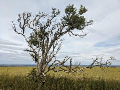 18:45:32 Near the top of Liddington Hill now. | 18:58:54 | 19:00:21 | 20:17:02 I found an inconspicuous spot to put up my tarp shelter. It took quite a while as I realised my options were a bit limited with only four pegs and four guy lines. It looks very amateurish (because it is!) but it actually did a pretty good job of keeping the rain off, and it seemed to be raining almost all night. |