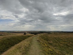 18:32:45 ...and finally the Ridgeway left the road altogether to climb Liddington Hill. | 18:36:00 | 18:36:39 Views as I climbed Liddington Hill. | 18:39:51 |