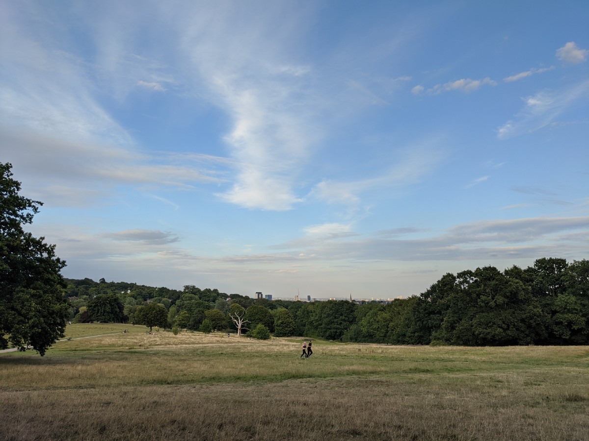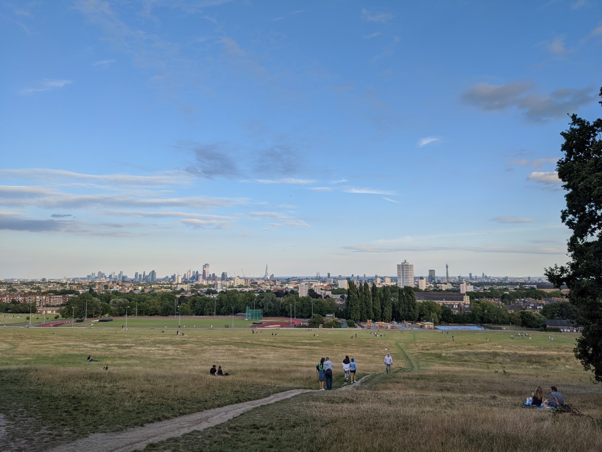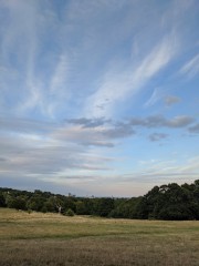 19:42:23 The view across Parliament Hill Fields. | 19:44:24 The top of Parliament Hill. | 19:50:51 As always I made my way to my favourite spot, by the Bronze Age barrow, and sat there for a good couple of hours to watch the sky change colour. | 19:53:41 ...with some Ambriel. |
