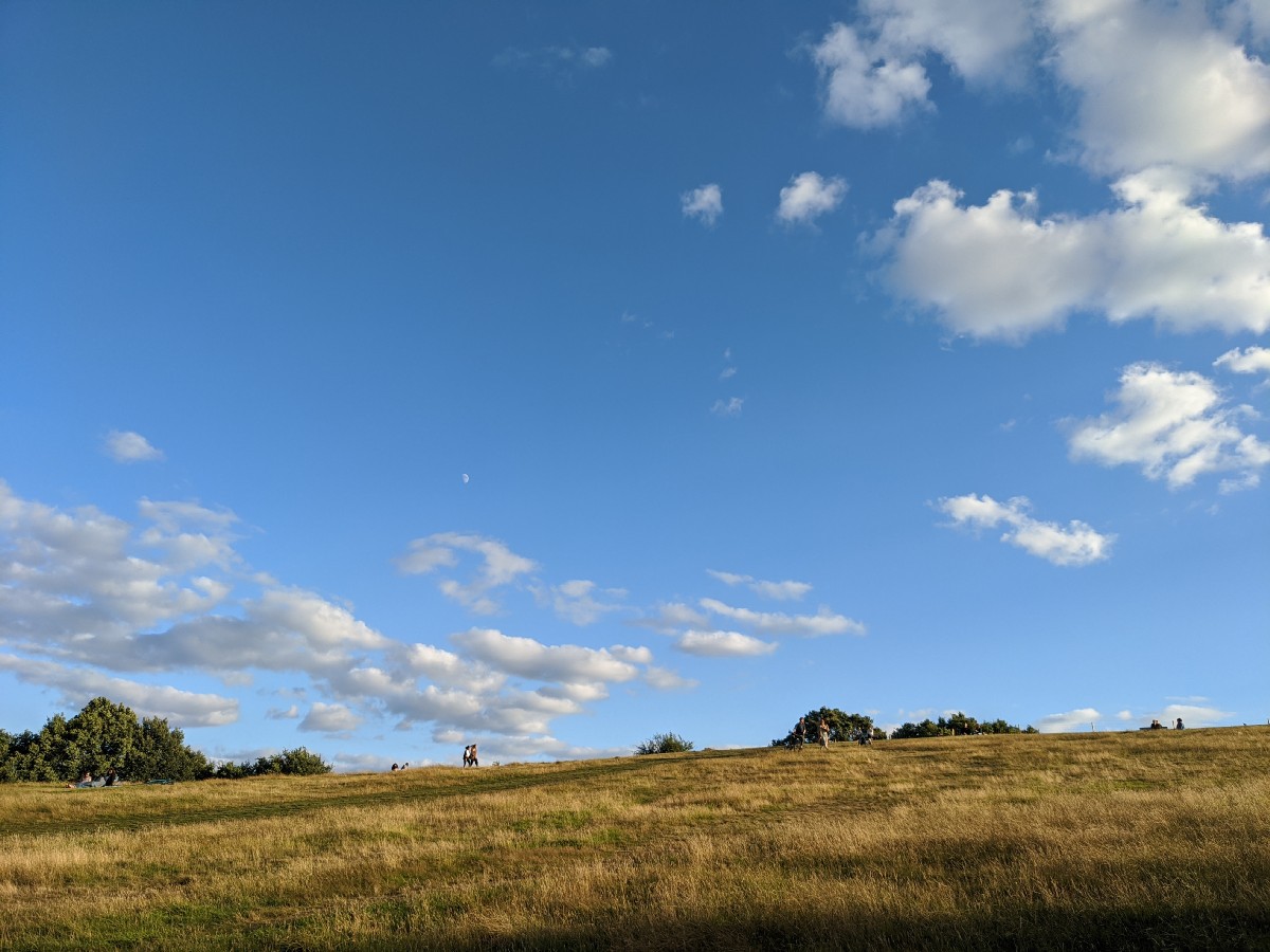 19:49:51 Apparently not many people carry an ice bucket to the heath. | 19:51:37 Black Chalk and blue sky. | 19:55:51 | 19:56:39 The moon just visible there. |