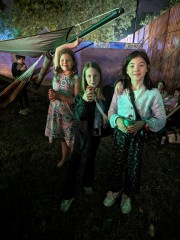 23:11:43 With old friends from Erika’s nursery days, who we hadn’t seen for a while. | 23:12:20 The three of us. | 23:27:13 A very late night for these girls! | 23:37:46 Erika asking Jarvis for an autograph. |