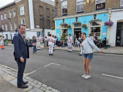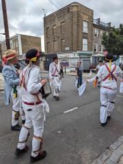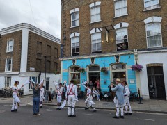 10:54:58 | 10:55:09 | 19:01:58 Dinner at our local cheap and cheerful Italian restaurant. | 20:21:21 Morris dancers getting ready outside the Pineapple. |