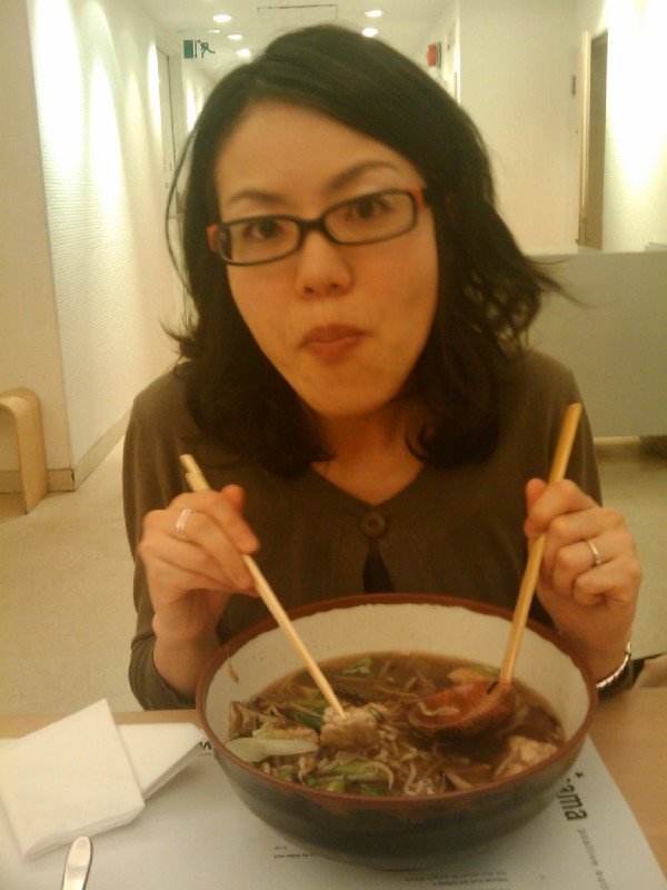 | | 19:04:58 Chie looking very pleased with herself. | 19:38:36 A post theatre drink at The Harp. | 20:14:27 ...and then some noodles at Wagamama, with an Asahi. |