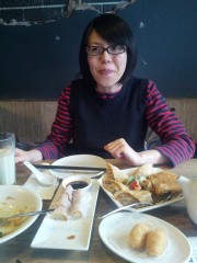 13:46:03 Dim sum at a place called Leong's Legend in Chinatown. This was apparently "vegetarian fish" - they looked a lot like spring rolls to me. | 13:46:17 Some kind of turnup derived thing. | 13:46:33 Chie and some of the dishes we ordered. | 13:46:52 |