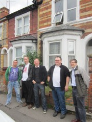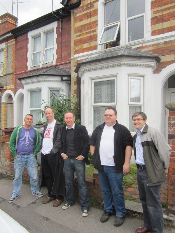 12:17:42 Rob, Tom, Simon and Jon out the back of the union. | 13:00:39 Rob struggling to remember how to drink beer. | 13:37:54 Cheese and chips! Although not quite the same as they used to be. | 13:40:29 We're all eating cheese and chips. |
