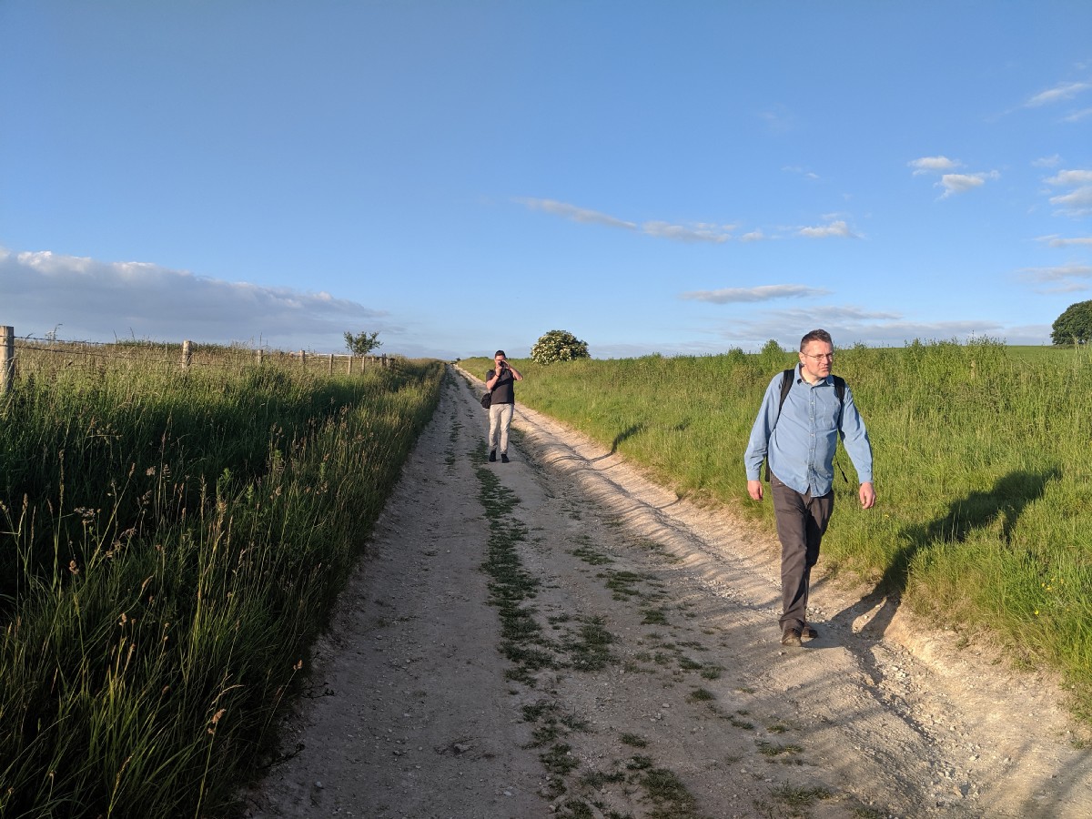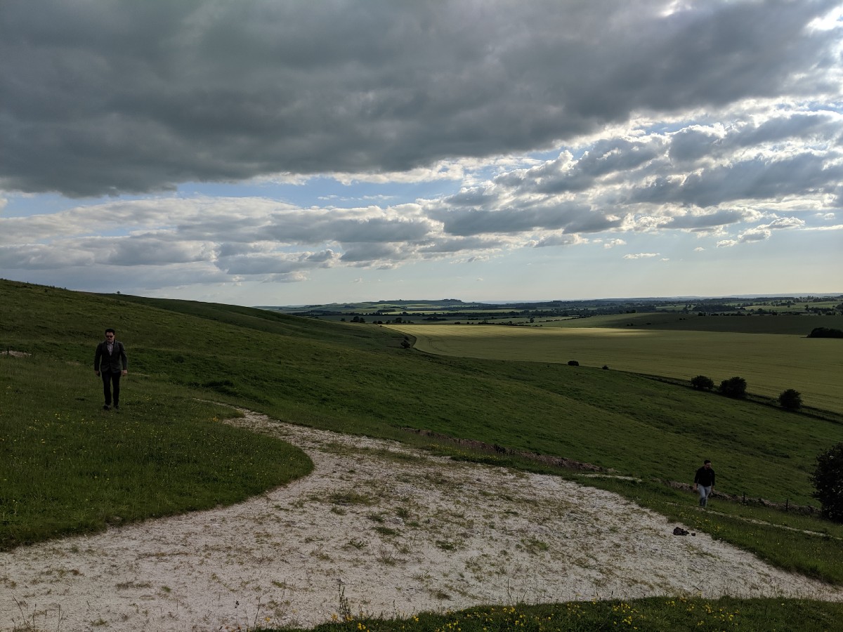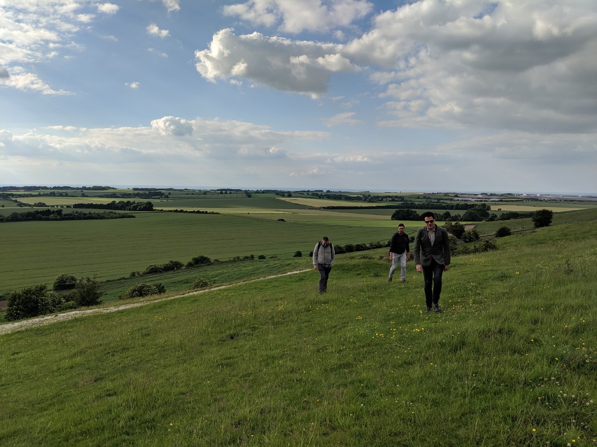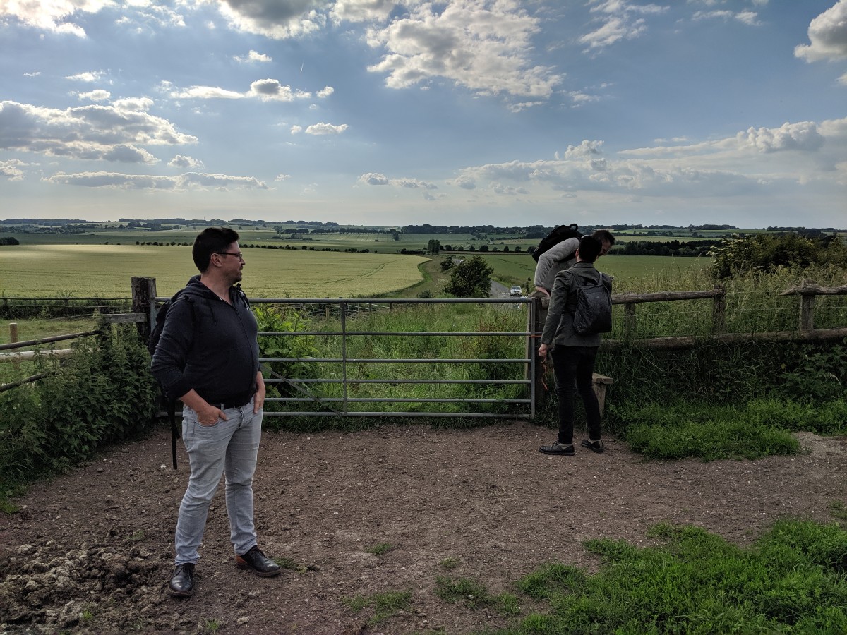 17:47:36 Finally all reunited at the pub in Swindon for some quick (and possibly ill advised) sustenance before embarking on our walk. | 18:20:22 We got a taxi to the Hackpen White Horse, and then walked from there to Avebury. | 18:20:26 | 18:21:05 |