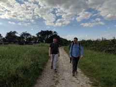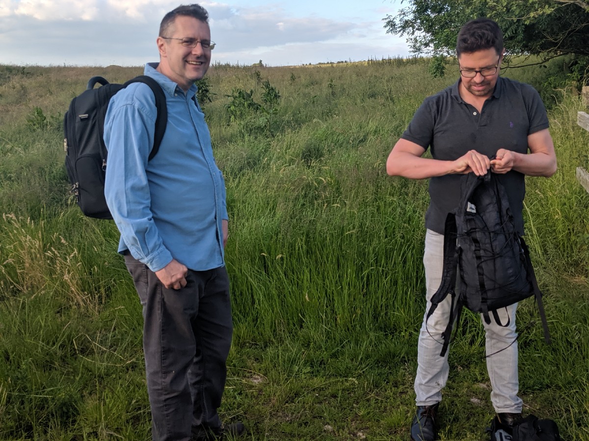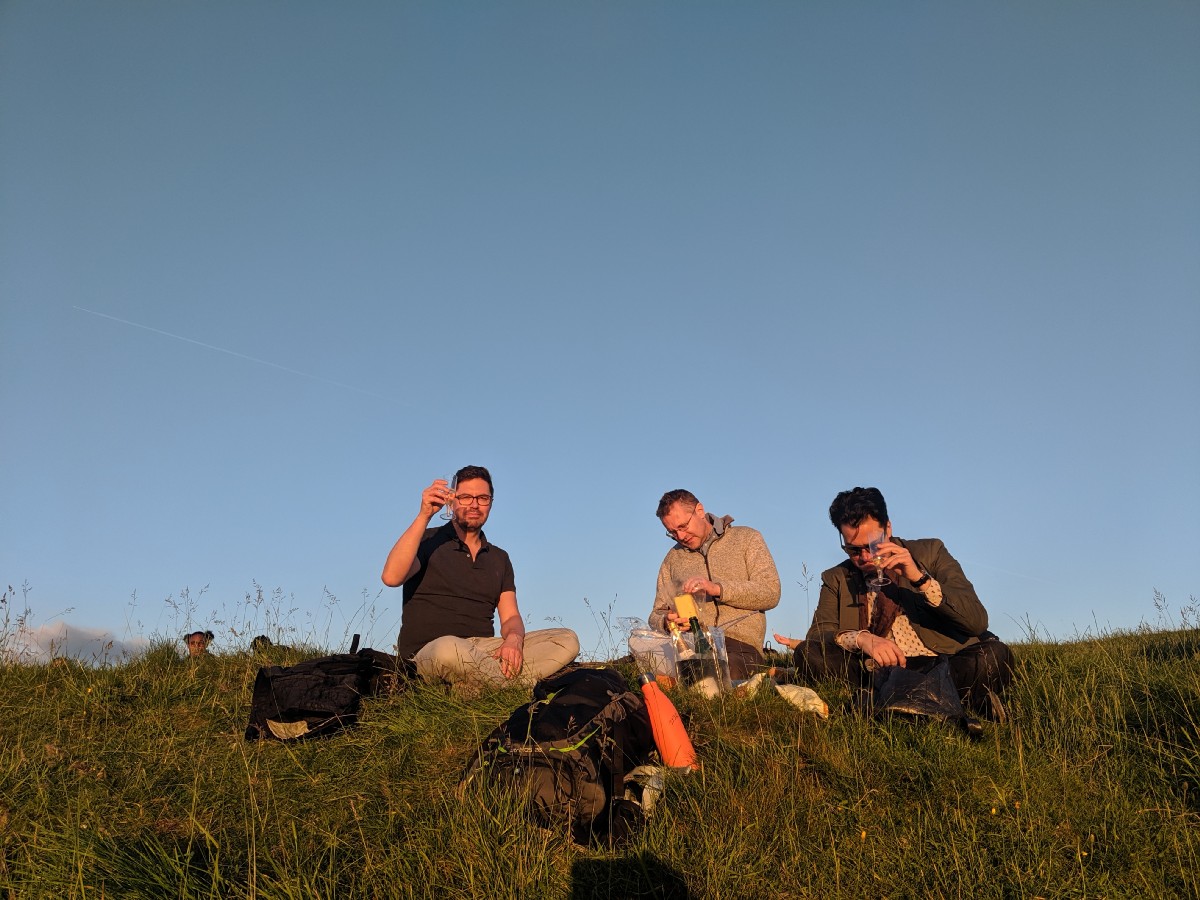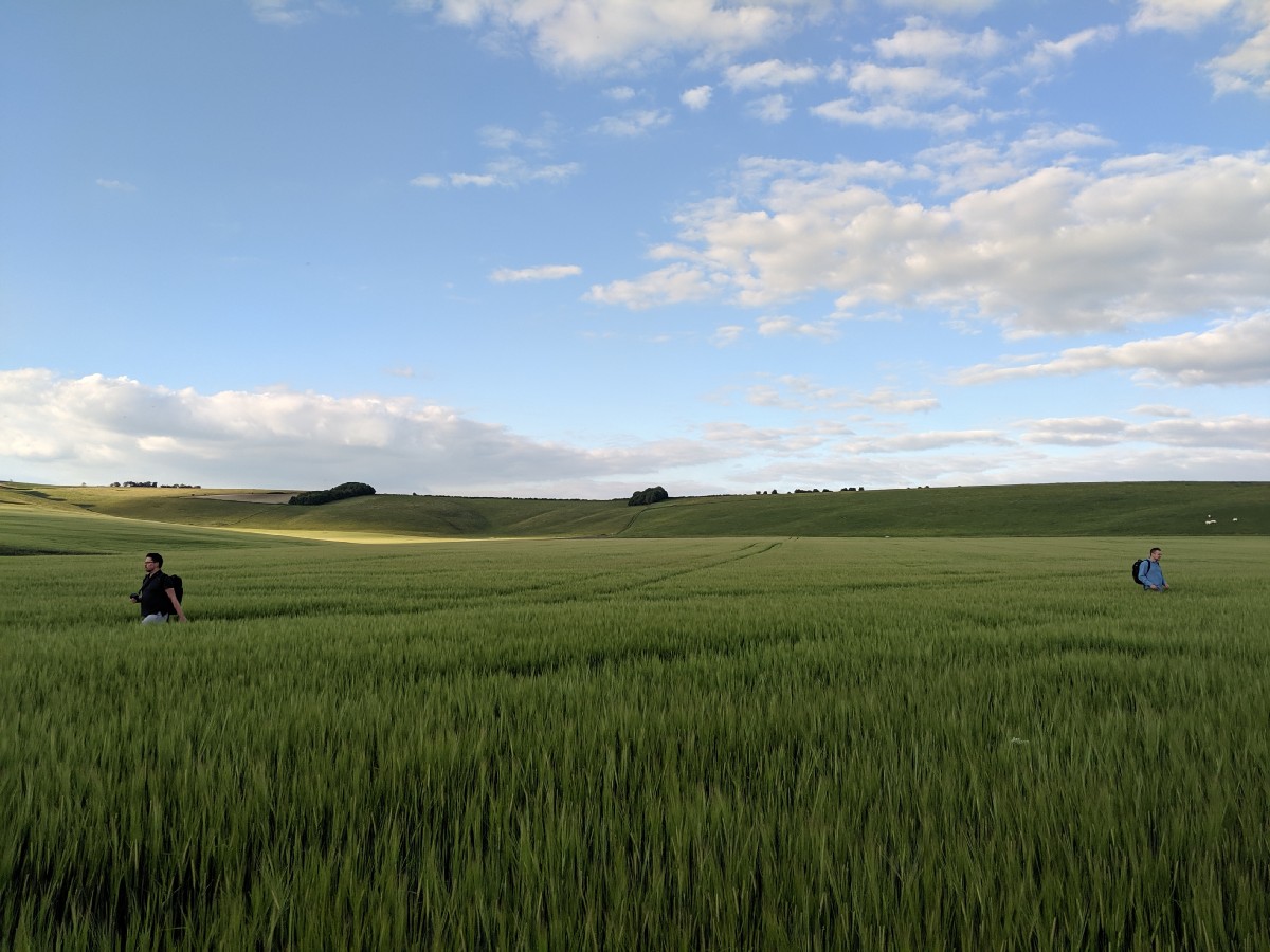 17:47:36 Finally all reunited at the pub in Swindon for some quick (and possibly ill advised) sustenance before embarking on our walk. | 18:20:22 We got a taxi to the Hackpen White Horse, and then walked from there to Avebury. | 18:20:26 | 18:21:05 |