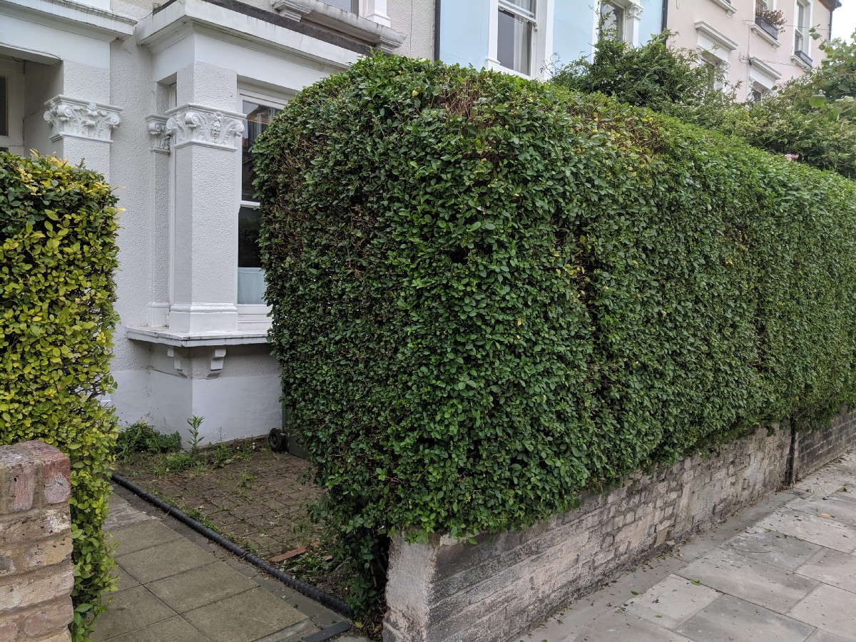 12:50:04 Vegetarian chorizo sausages and courgettes for lunch. Yummy. | 13:20:03 Before trimming the hedge. | 14:58:45 After trimming the hedge. | 16:05:33 Tried to get some arty shots of the Black Dog Hill for Twitter. |