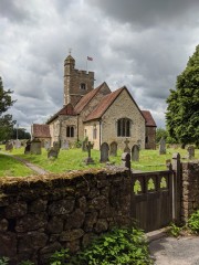12:37:07 Pleasant woodland walk beside a stream. | 12:39:03 Sluice gate? | 12:43:06 St. Martin's church, Ryarsh. | 12:44:38 Heading towards the M20 now. |