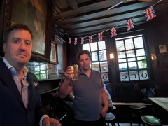 14:57:39 Admiralty Arch or whatever it's called, at the start of the Mall. | 15:14:01 We had no real intention of trying to get close to Buckingham Palace, but felt at least a quick nod to the Mall was called for. | 15:25:00 Next, the Red Lion on Crown Passage, another old favourite of mine, and I think the first time I've been back since The Unpleasantness (it seemed to remain closed for longer than a lot of other pubs when I'd tried to come here previously). | 15:25:14 Andrew wanted me to retake the previous photo. |