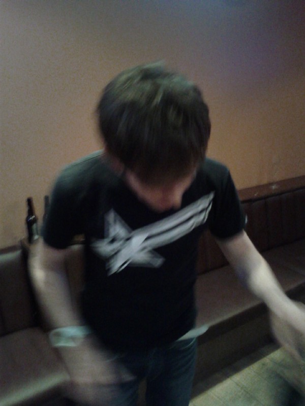 Just one picture (blurry shot of Gav) from a rather excessive evening of champagne and karaoke.