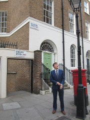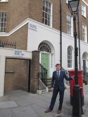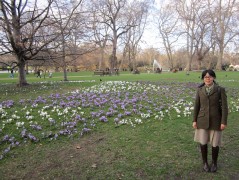 15:50:11 We decided to walk to St. James's. Here we are by Cockpit Steps, near to St. James's Park. | 15:50:18 | 15:51:38 Chie in St. James's Park amidst the flowering bulbs. | 16:54:47 Outside Lock and Co., with my hatbox. |