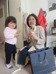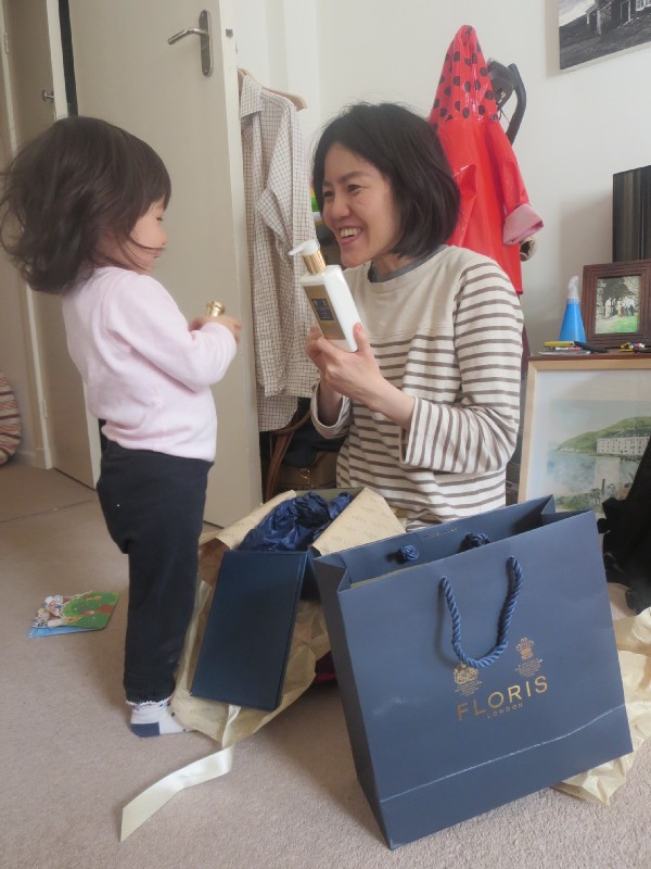 09:25:26 Mother's Day presents for Chie. | 09:25:33 | 09:29:49 Erika playing with the tissue paper from Chie's presents. | 11:38:30 The vintage (apparently circa 1976) train which took us to Welwyn Garden City. |