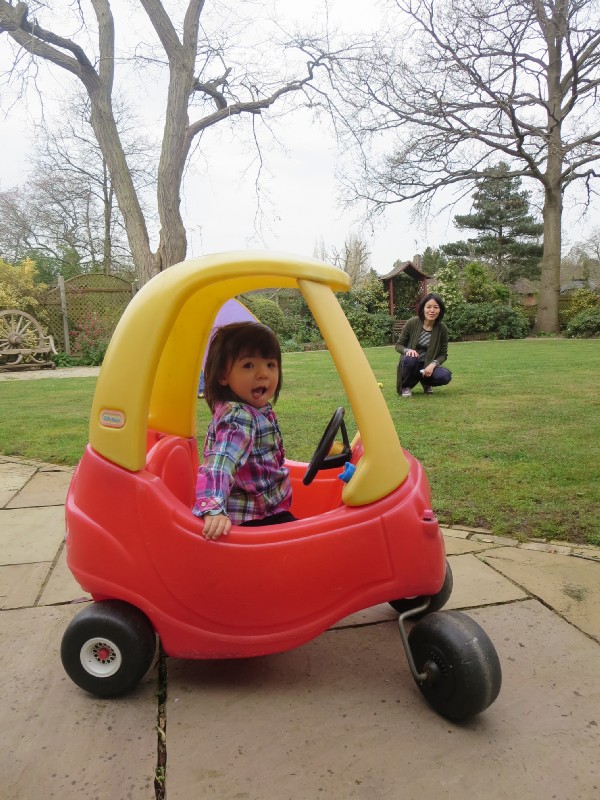 12:43:02 On the way to Ali's house in Welwyn, I rather liked this heather. | 12:43:04 | 13:31:34 Erika in a little car in Ali's garden. | 13:45:10 The moment we let Erika eat crisps for the first time. She looks bit unsure, but a minute later she was reaching up to the table for more. |