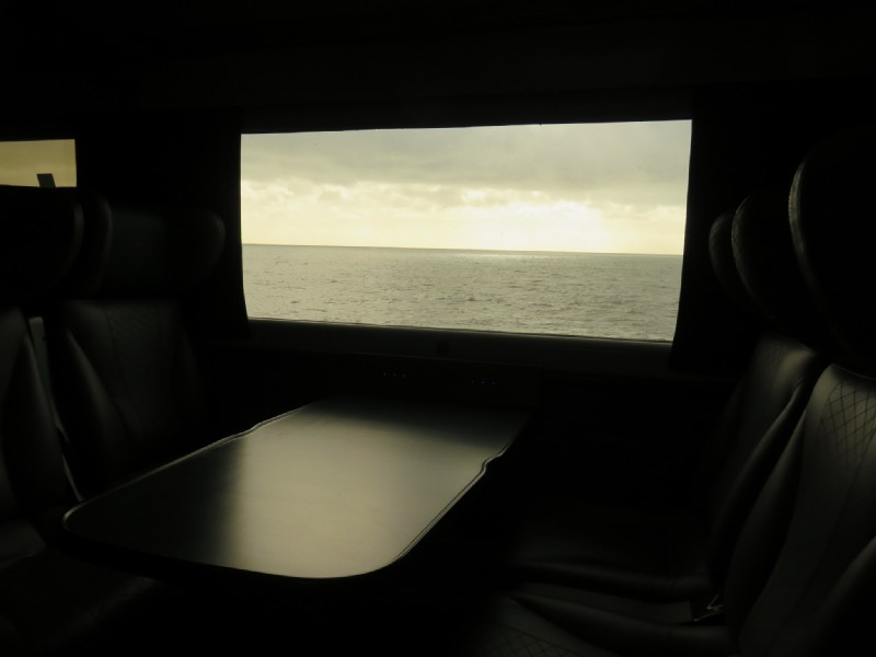 Wanted to get a picture of the sea through the train window. Rather an odd lighting effect in the end.