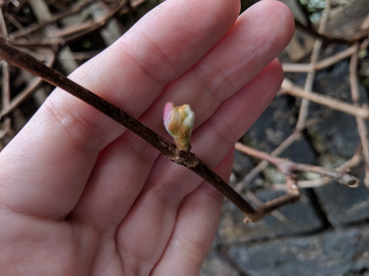 08:26:07 The cherry tree. Quite leafy now. | 08:26:15 Buds on the grape vine about to burst. | 08:26:21 | 08:26:27 The apple tree quite leafy too - but where is the blossom? |