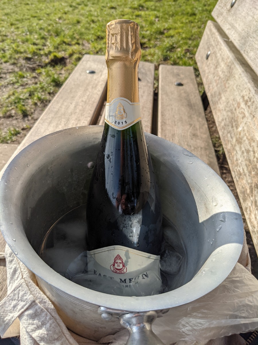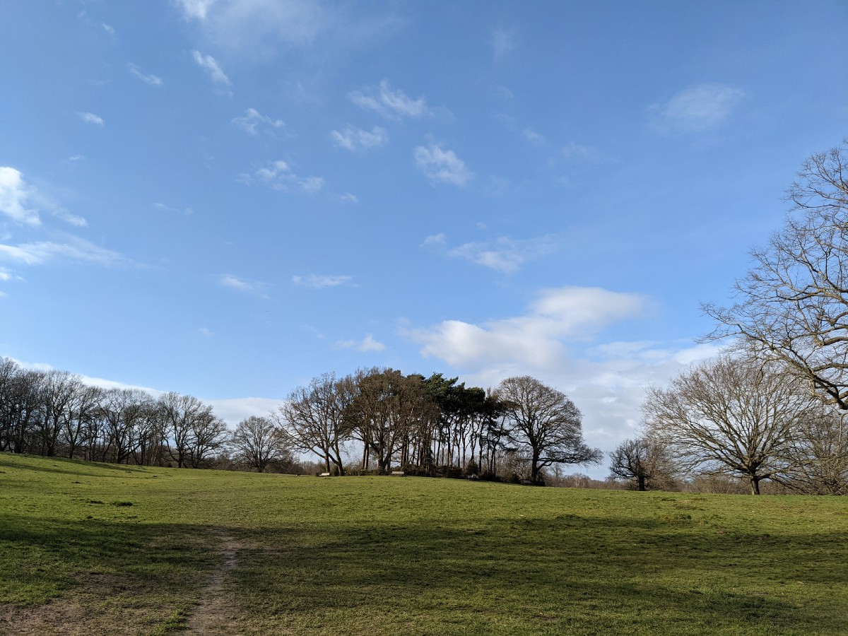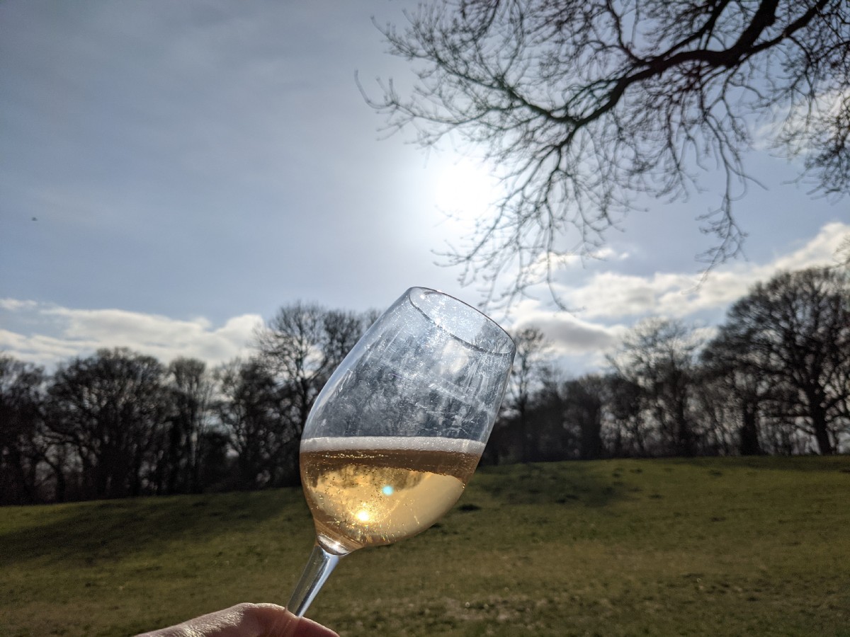 14:56:42 Zoomed in on the barrow. | 14:59:00 I decided to be extra ridiculous today and brought a wine bucket with me. | 15:01:20 Had a lovely time sitting here in the surprising sunshine, with the heath pretty much all to myself, enjoying some East Meon. | 15:05:00 The view from my bench. |