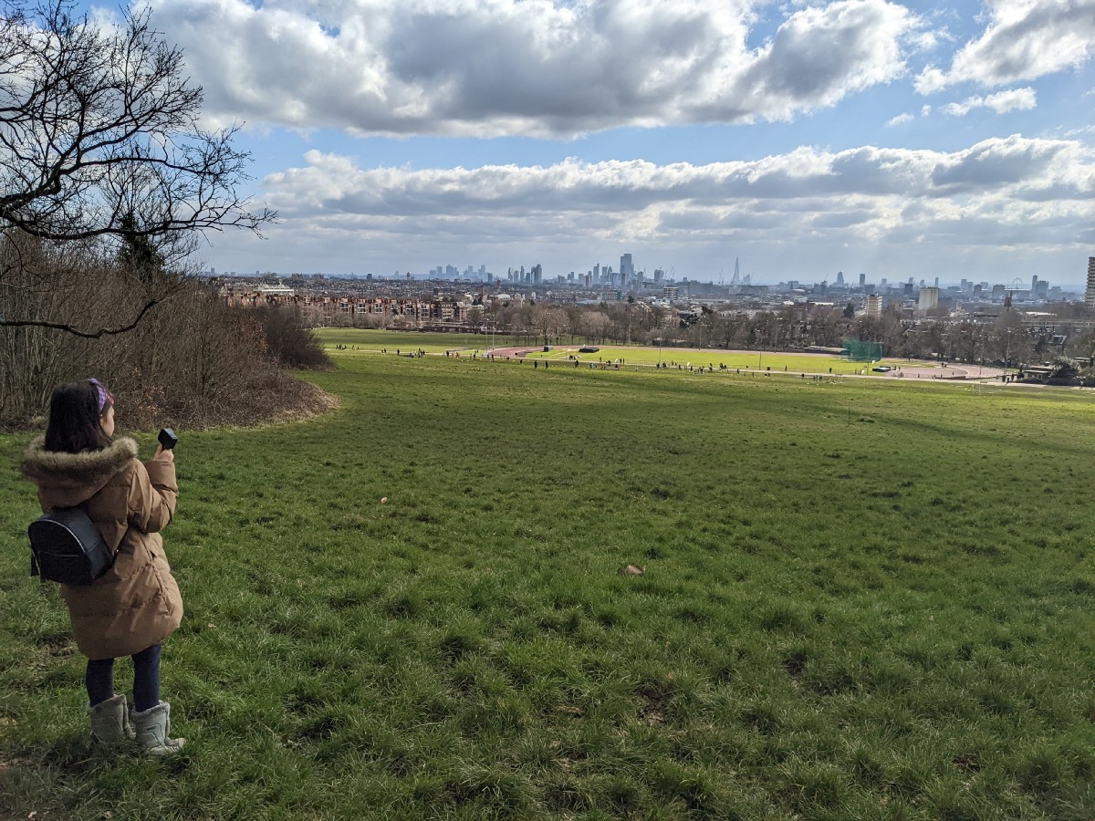 17:53:20 Back to Parliament Hill for a last glimpse of the London skyline before heading home. | 17:59:30 Heading back now. |