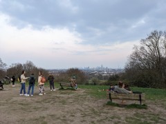 16:22:14 The cherry blossom on a street near us again. | 16:36:18 The girls went off somewhere for the afternoon - I forget where it was now - and so left to my own devices I of course headed to the heath. Nice bt of late afternoon sun shining through whatever this blossom is here. | 16:37:16 The view over the bandstand. | 16:41:01 Very busy on top of Parliament Hill today! |
