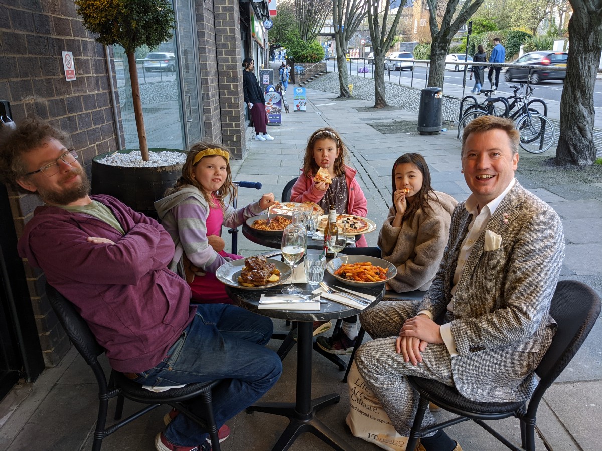 15:32:01 One last view of the blossom before heading off. | 17:58:57 Dinner now, at an Italian restaurant near us, with a friend of Erika's from school and her siste. | 17:59:26 Taken by the waitress. | 17:59:27 |