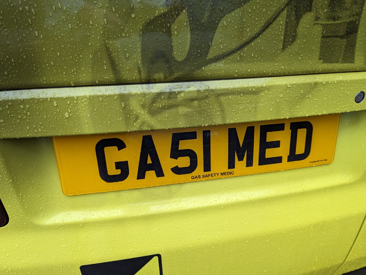08:13:29 The boiler engineer's numberplate. | 10:18:55 Only two hours into the work and already the old one is out and the new one is in. | 16:59:10 All finished now. | 17:32:11 To celebrate the new boiler I went to sit in the cold and rain on the heath. |