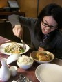 | 16:21:12 The Houses of Parliament again, but this time taken from Westminster Bridge, and looking decidedly overcast. | 16:24:18 Big Ben (yes I know technically this is called St. Stephen's Clock Tower or whatever), looking somewhat imposing. | 17:13:13 At the Thai place in Soho, Chie attacking her meal. |