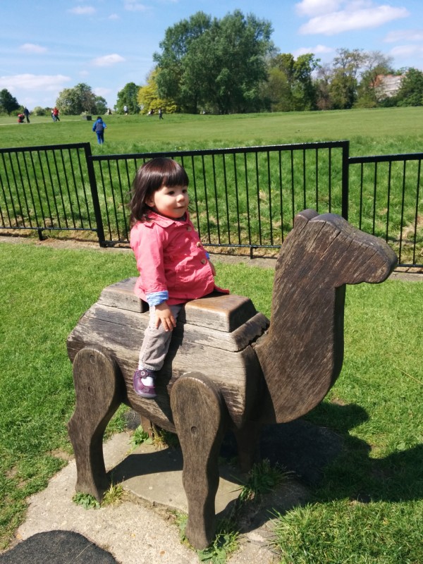 12:14:41 Lunch at Pizza East in Kentish Town. | 12:14:46 | 12:53:22 Erika looking a bit confused at the farmers market on Hampstead Heath. | 13:04:11 Erika on a wooden camel. |