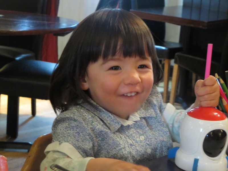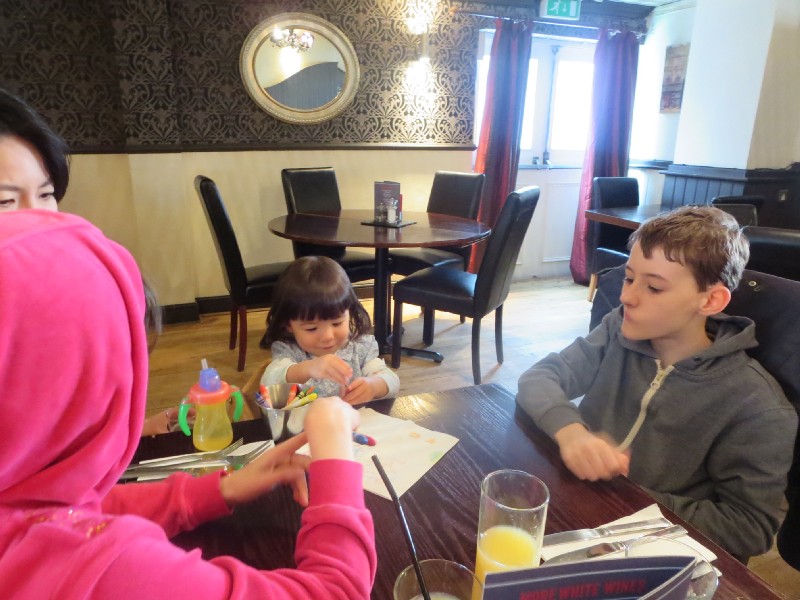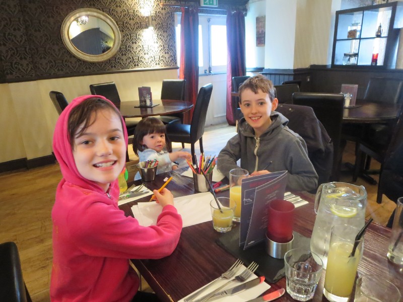 12:44:50 The kids end of the table. | 13:15:46 Group shot taken by the waitress. | 13:41:34 Erika loved the pencil sharpener. | 15:34:03 After leaving the pub we headed to a nearby playground. |