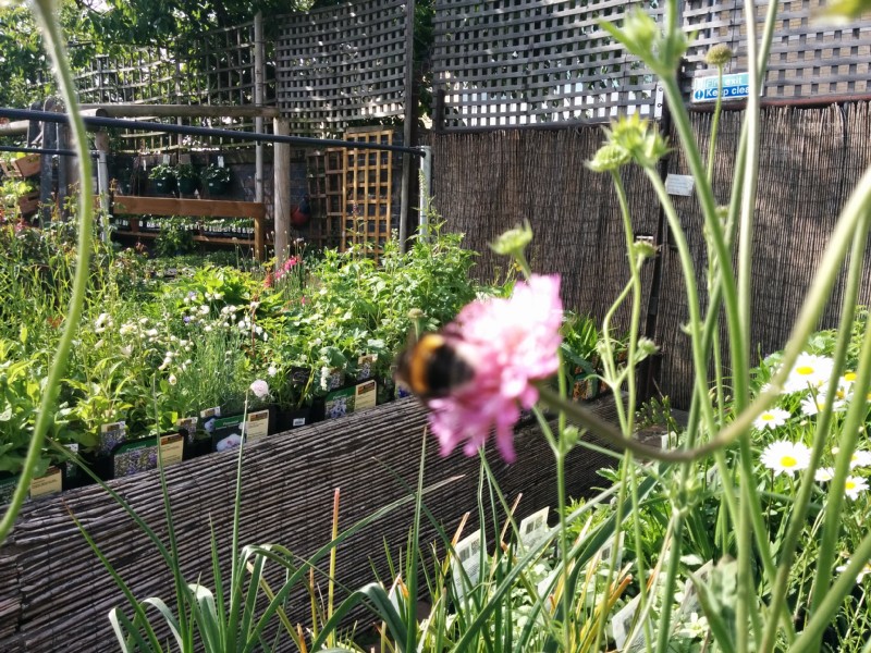 15:22:13 Back at the flat, trying out the new coffee beans from Camden Coffee Shop - this was a very good coffee! | 16:37:22 Popped to the garden centre for a bit, unsuccessfully tried to take a photo of this bee. | 16:54:42 Roses in our front garden (mostly just a bin storage area). | 16:54:51 |