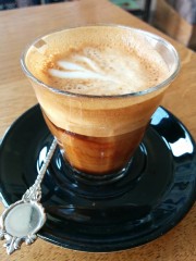 09:13:54 Erika on a very short bus ride to Archway, in an attempt to buy coffee beans. | 09:19:55 In Bread and Bean, the coffee shop near Archway, which has sold out of coffee beans. | 09:20:22 My macchiato. | 09:23:15 |