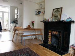 12:25:34 We don't yet have the "proper" dining chairs for it yet, but still I think it looks quite nice, considering we went for something so cheap. | 12:42:12 First meal on the new dining table. | 12:48:28 Erika with the odd fava bean soup I made for lunch. | 14:15:41 Passing through Camden in the afternoon, after buying coffee beans. |