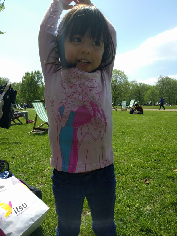 13:45:10 Not very successful picture of my lunchtime tipple in the foreground, and way off in the background Chie, Erika and friends sitting in Green Park. | 14:04:32 After quickly finishing my lunch I went to say hello to Chie, Erika and co. | 14:04:44 There they all are. | 16:44:18 A bit later on, the usual end of the week beer and pizza event at work, to which I took along a bottle of Gevrey Chambertin I'd picked up in Berry Brothers and Rudd earlier in the day. |