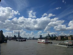 14:47:51 Walking along the Thames at Bermondsey. | 14:54:24 Lovely view toward Tower Bridge as always from here. | 15:41:47 Jim and Andrew outside the Angel. | 18:57:13 As we were leaving the weather started to take a turn for the worse. |