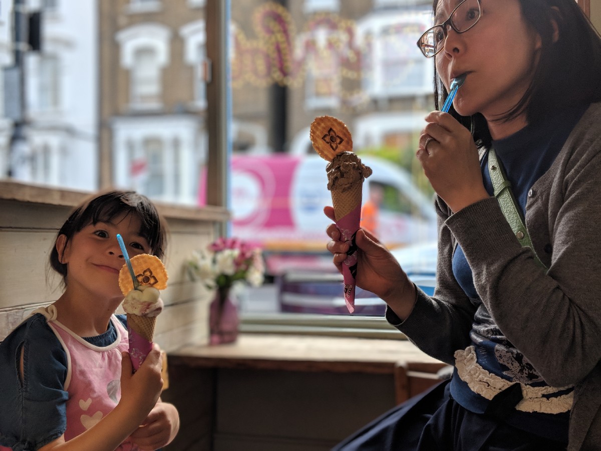 17:43:16 Heading back to North London. | 19:54:17 A late ice cream in Ruby Violet. | 20:06:37 | 20:10:46 Roses. |
