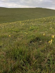 14:07:03 Lots of cowslips. | 14:07:07 | 14:10:20 | 14:11:45 Looking slightly out of breath after climbing one of the hills. |