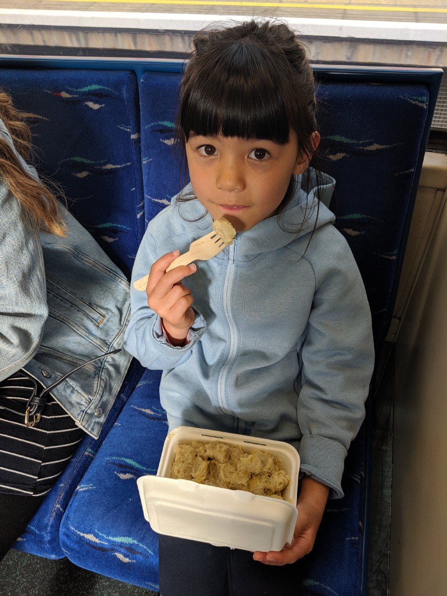 17:33:42 Erika was hungry as we were leaving Greenwich so oddly we picked up whatever we could find from the stalls which were still open on Greenwich Market - and ended up with this gnocchi. |