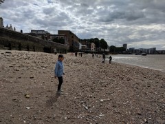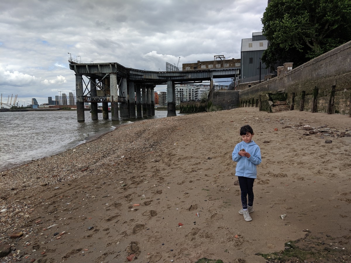 14:16:16 Not actually sure what Erika has in her hand here. | 15:09:10 Walked along the foreshore for a bit after leaving the Cutty Sark. | 15:10:55 Erika on the foreshore. | 15:11:08 |