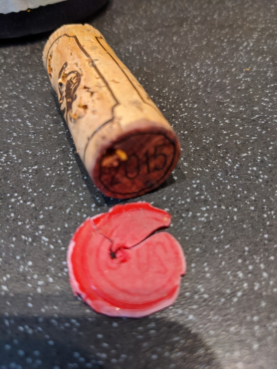 17:35:08 Decided I should try the first bottle this evening. | 17:40:09 Inspecting the cork. | 17:41:25 | 17:41:48 |