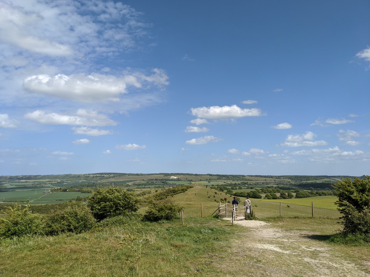 13:58:59 There were a few other people around but it certainly wasn't crowded, and it was very easy to stay many metres apart at all times. | 14:01:13 | 14:01:30 Thankfully despite the unpromising forecast we were graced with marvellous weather and I found the huge expanse of green and blue before me immensely uplifting. | 14:01:33 Look at all that rolling green landscape. |