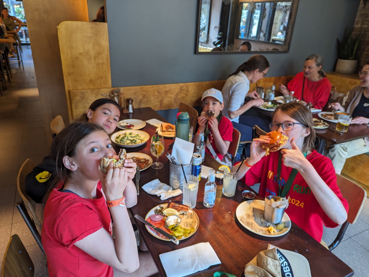 Erika did the fun run around King’s Cross again. Lunch with friends afterwards.