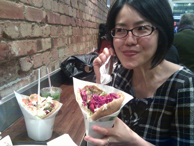 Mixed bag of a day including a late lunch at Maoz (a falafel place on Old Compton Street) and chocolates from Fortnum and Mason.