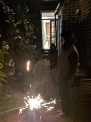 Took Erika to the Pineapple after school. Later on, lit some sparklers in the back garden.