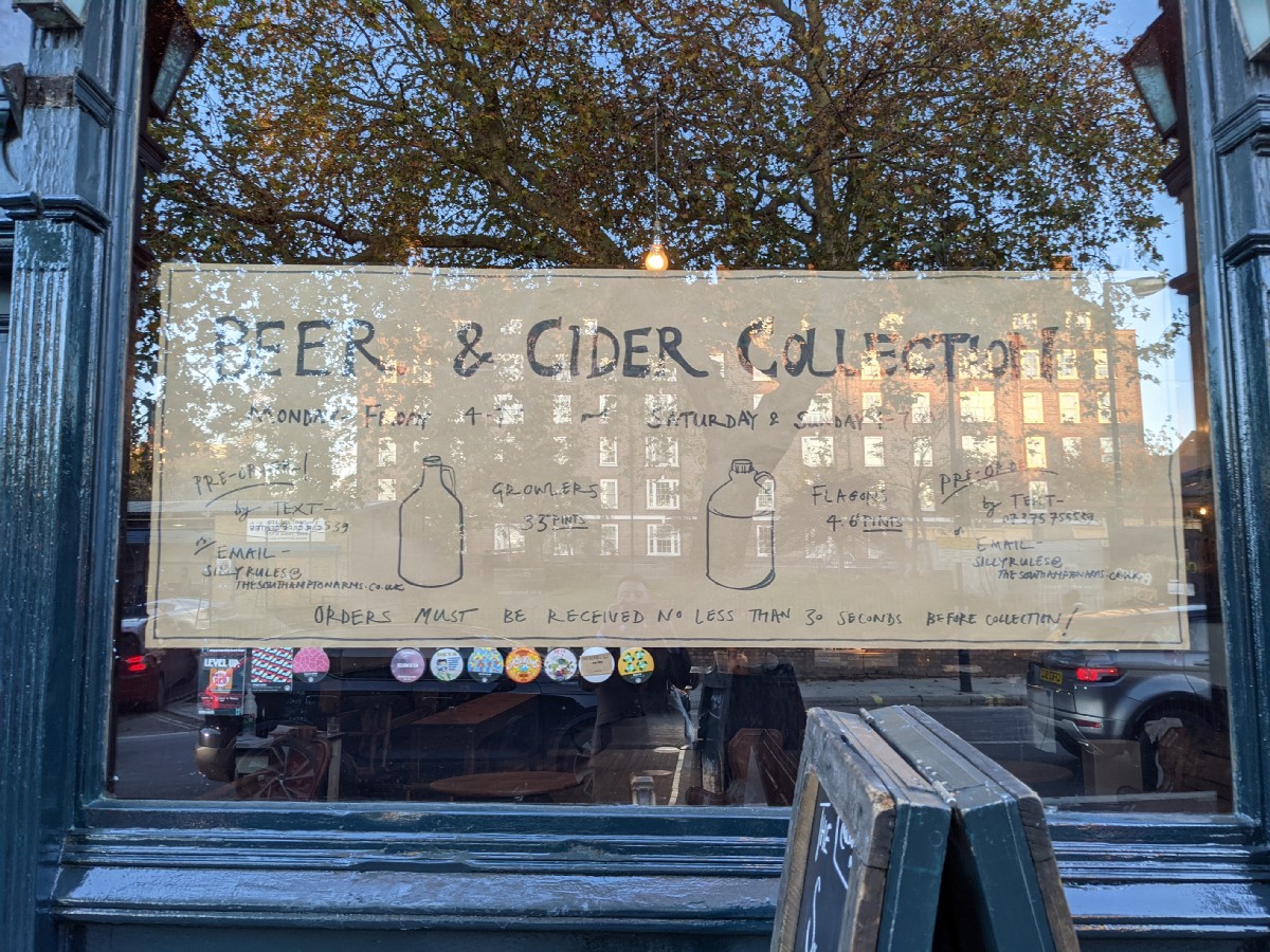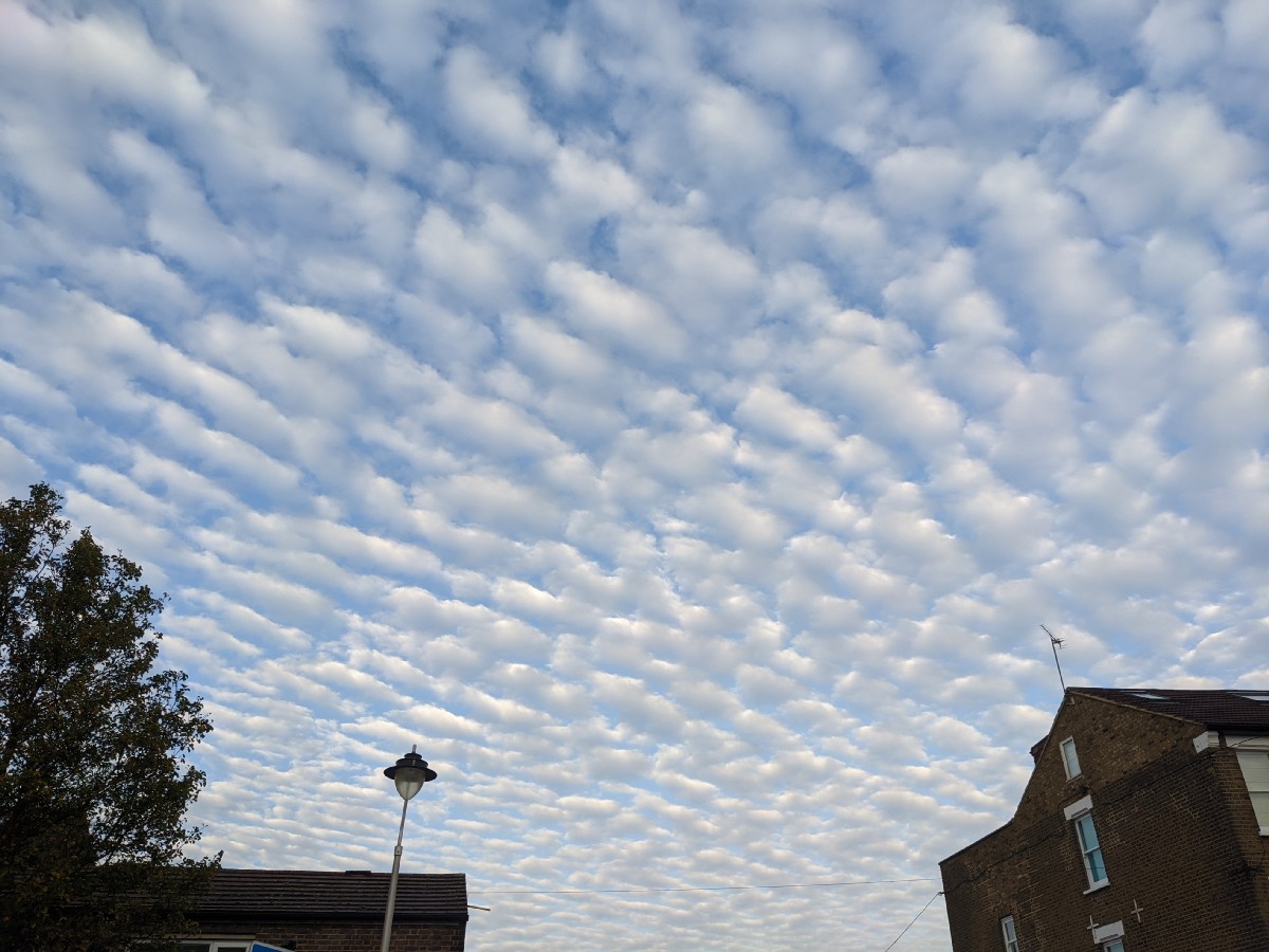 08:16:54 Very interesting clouds in the morning. Like ripples on a pond. | 08:28:26 I went to pick up takeaway coffees (and a smoothie for Erika) from our local cafe to go with our breakfast. | 16:07:28 Finished work a bit early, and decided to go and try out the Southampton Arms new "preordered" takeaway drinks service. | 16:07:37 Orders must be received no less than 30 seconds before collection. |