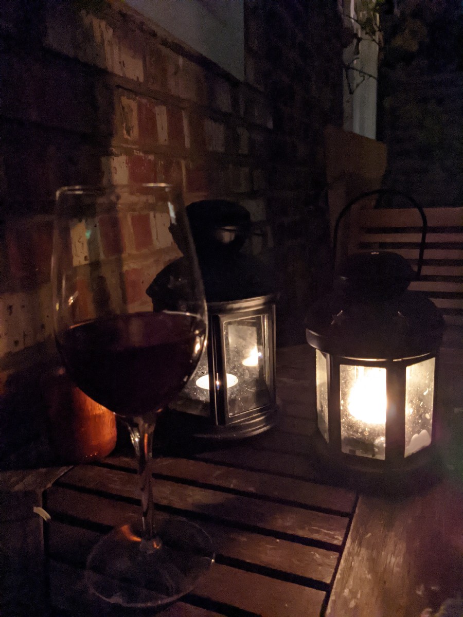 I apparently had a glass of wine in the garden in the evening. Can't remember now what it was.