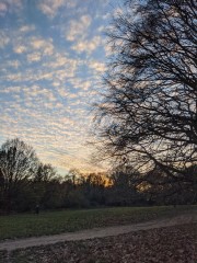 17:07:12 The moon through the silhoutted branches of an old tree. | 17:09:26 Goodnight Hampstead Heath. Time to go home. |