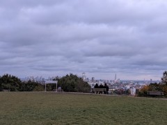 16:12:36 The view of the bandstand as I arrived on the heath. | 16:12:46 Nice candyfloss clouds. | 16:15:32 The top of Parliament Hill with more candy floss clouds. | 16:16:49 Unfortunately somebody spoiling the atmosphere there. |
